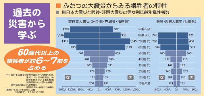 東日本大震災において、全体の死亡者数のうち高齢者が約6割であったこと、障がいのある人の死亡率が被災住民全体の死亡率の約2倍であったことが明らかになりました。