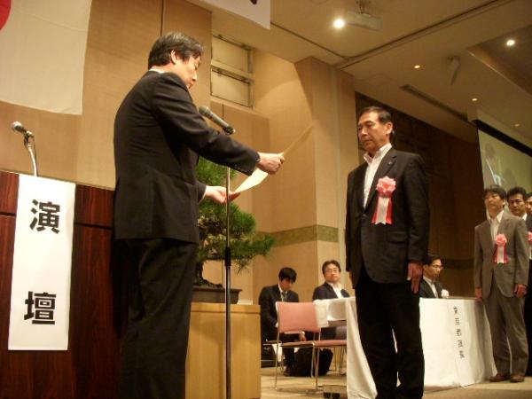 国土交通大臣賞を受ける山中市長(砂防会館:東京都)