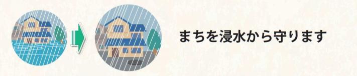 下水道がない時代は、大雨が降るとまち中に雨があふれ、家や財産を流してしまいました。下水道は降った雨を速やかに集めて川や海に放流し、まちを浸水から守ります。