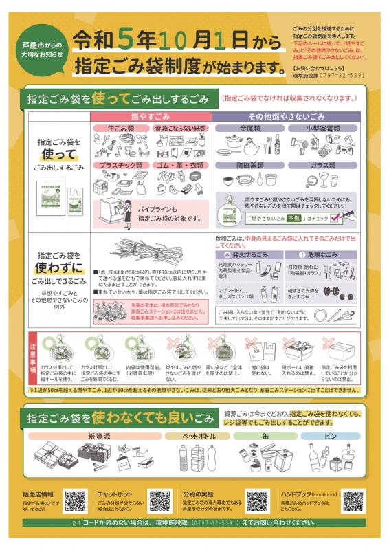 あしやトライあんぐる【指定ごみ袋を使用してのごみの分別ポイント】