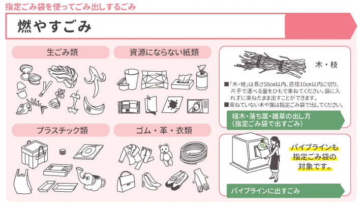 芦屋市で指定ごみ袋を使う必要があるのは、燃やすごみとその他燃やさないごみになります。