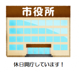平日に手続きにお越しになれない方は、休日開庁日時をご確認のうえご来庁ください。