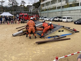こちらは芦屋市消防署特別救助隊による救助演技になります。